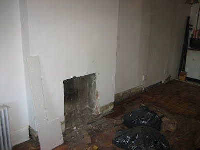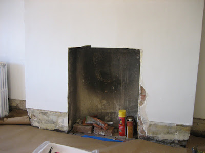 so, while replacing/tearing out the old baseboard, i accidentally broke the cover that someone had fashioned before we came along. after some on the spot deciding, the fisher's decided to go ahead an uncover it. it's pretty neat, and has potential to become a nice feature with a little tlc.